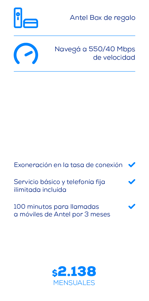 Si ya tenés teléfono fijo en tu casa, nos brindás tu número y te confirmamos si podés acceder a estos planes de fibra óptica.
